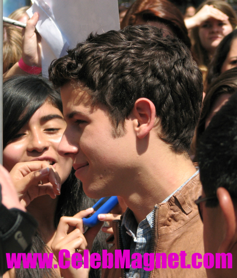 Nick, without girlfriend Delta Goodrem in tow, took time to take a picture or sign autographs with every one of the hundreds of fans gathered around the Extra stage.