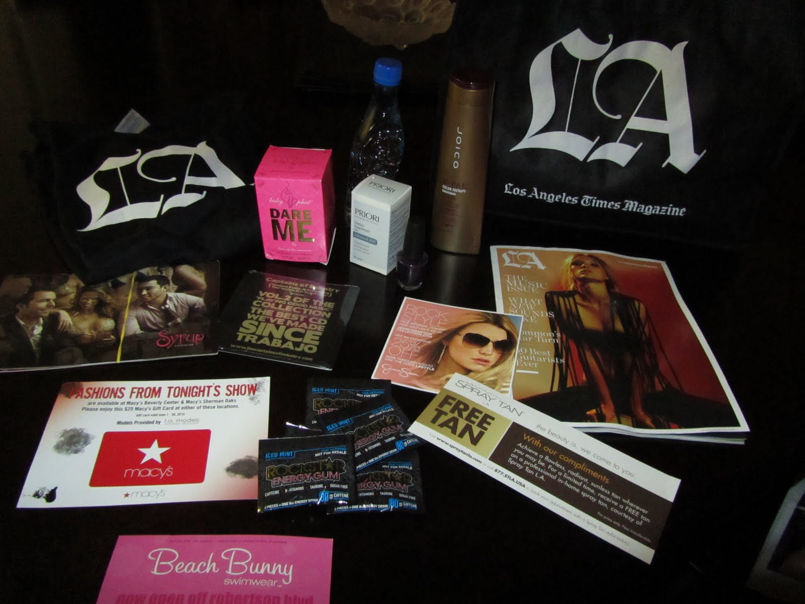 To make the night complete, each of us received a gift bag from LA Times Magazine, which for the women included gift cards, perfume, hair products, RockStar gum, and a brand new nail polish created by OPI for this event. I can’t lie, I love gift bags. Thank you LA Times. Here is what the women received: