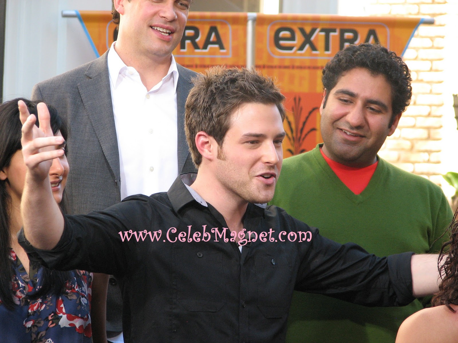 The cast of NBC’s newest comedy, Outsourced, Ben Rappaport (Todd Dempsy), Diedrich Bader (Charlie Davis, also OfficeSpace, Napoleon Dynamite), Parvesh Cheena (Gupta, also Barbershop), Pippa Black (Tonya, also Neighbours), and Rebecca Hazlewood (Asha, also Doctors), was at The Grove today, bringing gag gifts for Mario Lopez, host of Extra.