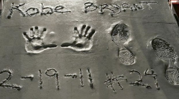 Kobe Bryant has become the first athlete – ever – to be immortalized in cement at Grauman’s Chinese Theatre! Yep- Kobe and not Michael Jordon, not Joe Montana, not Babe Ruth, not Tiger Woods, not Wayne Gretzky, nor Mohammad Ali. But Kobe Bryant.