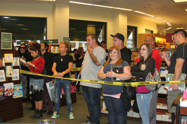 Fans lined up for hours (some up to six hours or more) and over the length of three floors at Barnes & Noble for a chance to meet the famous musician. Here are some photos. Enjoy!