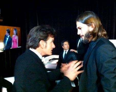 “Giving the new kid a little advice..!” and “With @aplusk backstage at the Emmy’s…”
