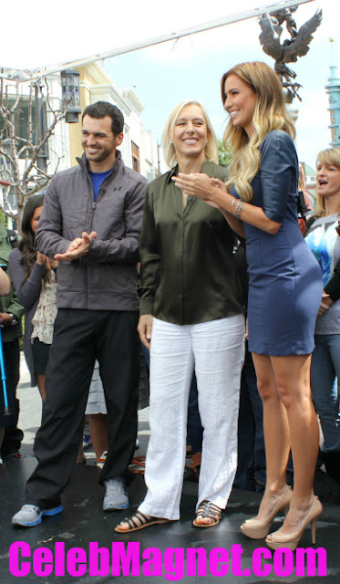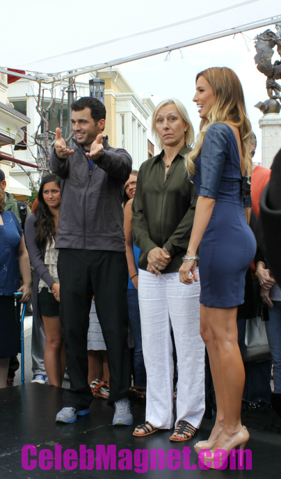 SPOTTED: Dancing with the Stars partners Martina Navratilova and Tony Dovolani enjoying a leisurely stroll through The Grove in Los Angeles, California on March 23, 2012. The pair also gave Renee Bargh of Extraan interview where Dovolani sported an Under Armor jacket with “Team Martina and Tony” on the back. Great team spirit!