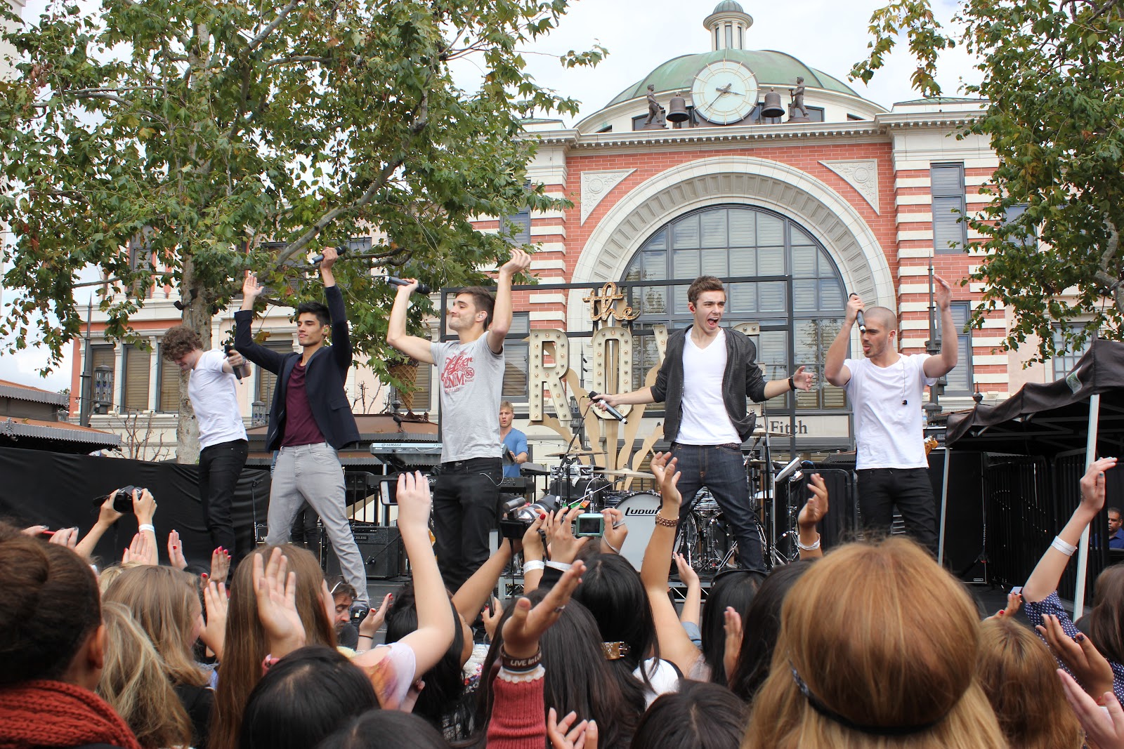 The hottest boy band to hit these shores had American fans screaming at The Grove Thursday (April 26). They gifted their fans with a free concert after they did an interview with Mario Lopez and Renee Bargh of Extra. If all that weren’t enough to drive their fans wild, the boys stuck around for hours signing their CD’s at a fan meet and greet.