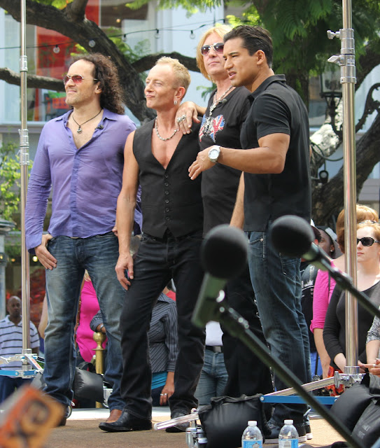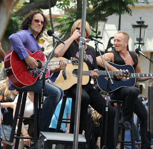 SPOTTED: Def Leppard members Joe Elliott, Phil Collen and Vivian Campbell appeared at The Grove for an interview and live acoustic performance on Extra TV.