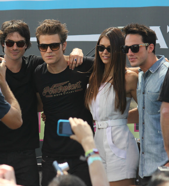 SPOTTED: The cast of The Vampire Diarieson the Extra TV stage at Comic-Con July 14, 2012.