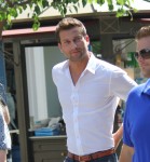 [Below are photos of Chris and Michael Stagliano from their recent interview on Extra at The Grove:]