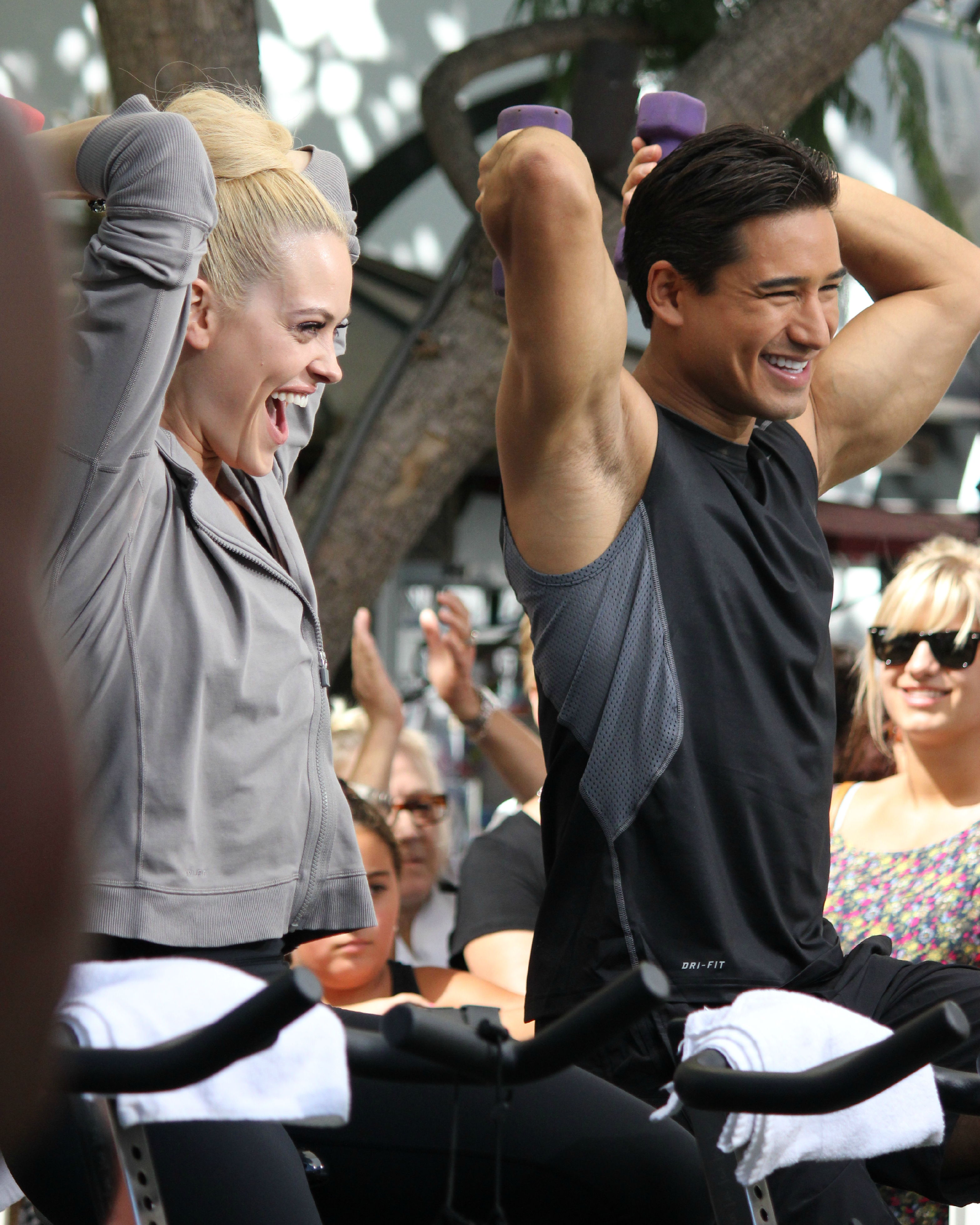 Peta-Murgatroyd-working-out-weights Published September 19, 2012 at 3135 × 3919 in Peta Murgatroyd & Mario Lopez Glisten In Sweat Under Hot LA Sun [Photos] DWTS champ Peta Murgatroyd and Mario Lopez workout at The Grove to promote LA Cycle House September 18, 2012.
