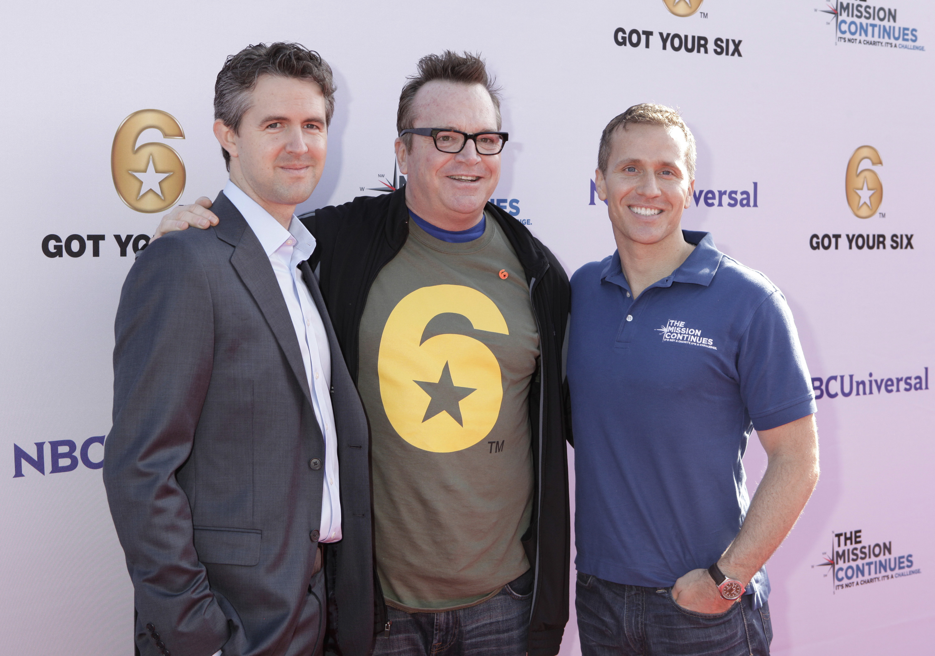 Chris Marvin, Managing Director of Got Your 6, Tom Arnold, Eric Greitens, CEO of The Mission Continues at the Got Your 6 and The Mission Continues Service Project Event at Universal Studios.