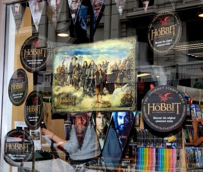 Entire facades of office buildings are covered with Images of British actor Martin Freeman playing the central role of Bilbo Baggins. His face is also plastered on everything from coins and stamps to the side of an Air New Zealand plane.