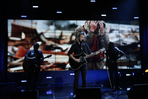 NUP_153056_0121 Published November 2, 2012 at 600 × 400 in Hurricane Sandy Benefit: NY & NJ Natives Jon Bon Jovi, Springsteen, Aguilera Perform For Red Cross [PHOTOS] Jon performing at ‘Hurricane Sandy: Coming Together’