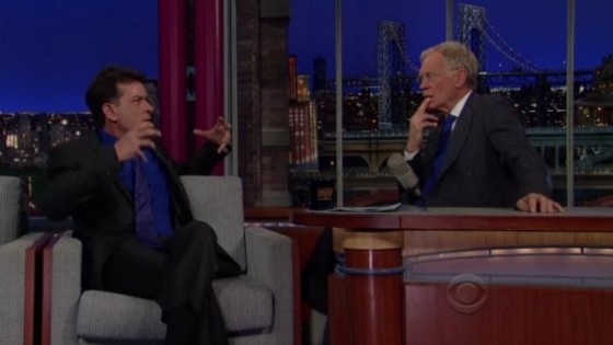 During promotional duties for his show “Anger Management,” Charlie Sheen stopped by the “Late Show with David Letterman” on Tuesday (January 15).