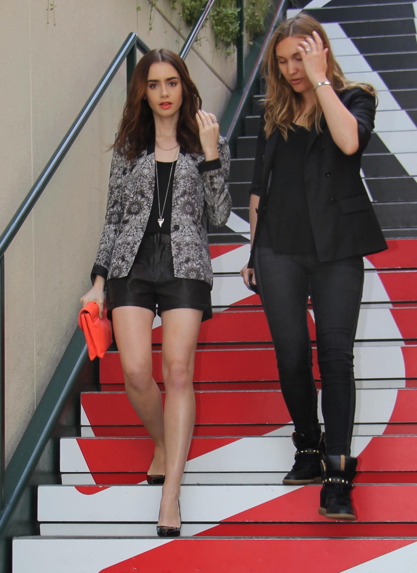Lily-collins-shorts Published March 28, 2013 at 1678 × 2304 in Lily Collins Shows Off Toned Legs At ‘Extra’ Appearance with Michael Angarano!