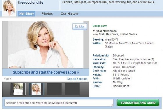 Martha Stewart Looking For Love on Match.com, Receives Overwhelming Response!