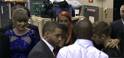 Watch Selena and Justin sneaking a kiss backstage in the video clip below, and then check out the amazingly funny gif of Taylor Swift making a disgusting face as she catches her bestie kissing JB: