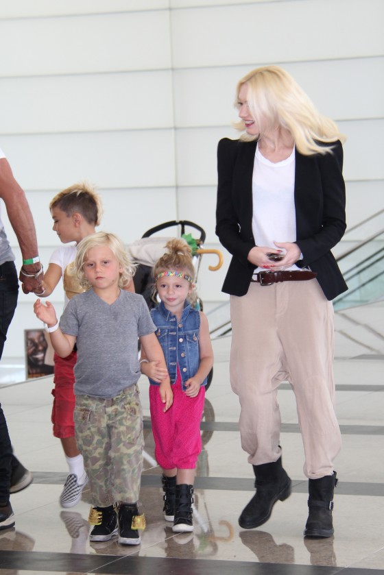 The adorable Rossdale boys matched mom and dad in style too, adding their own flare by rocking Jeremy Scott and Vans shoes. The little princess accompanying the Stefani-Rossdale clan is Stella Stefani, Gwen’s niece who carried her little self like a pro in front of the photographers. Dressed in a pink romper and denim vest, and showing off her headband and up do, Stella had a blast modeling her adorable look.