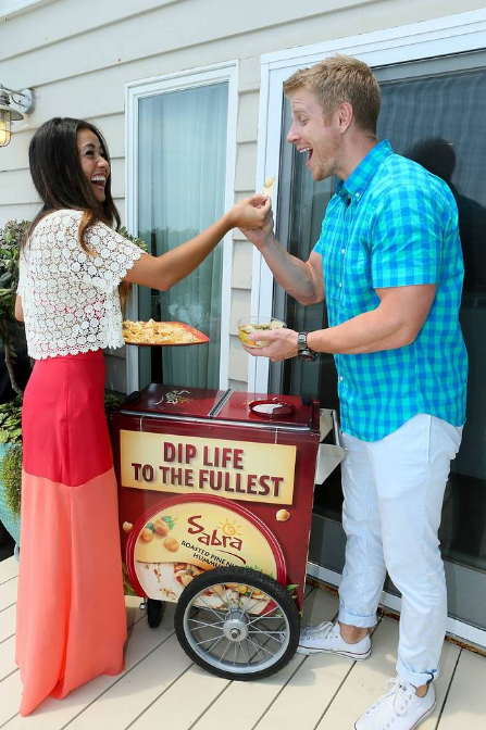 Sean Lowe showing why he’s a true Bachelor while opening up the door for his gal Catherine Giudici at The Kia Beach House presented by Sabra.