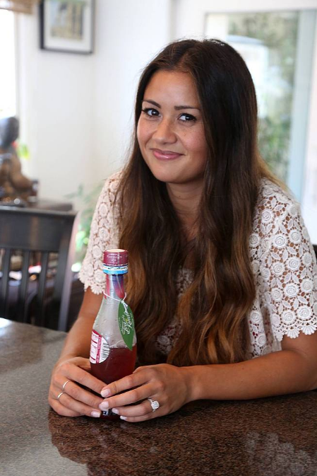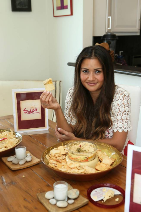Catherine Giudici obsessing over products provided by Barefooters at The Kia Beach House presented by Sabra.