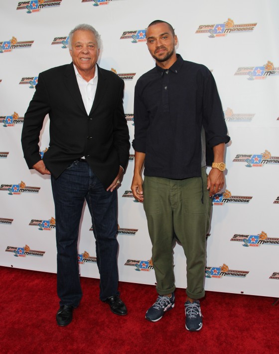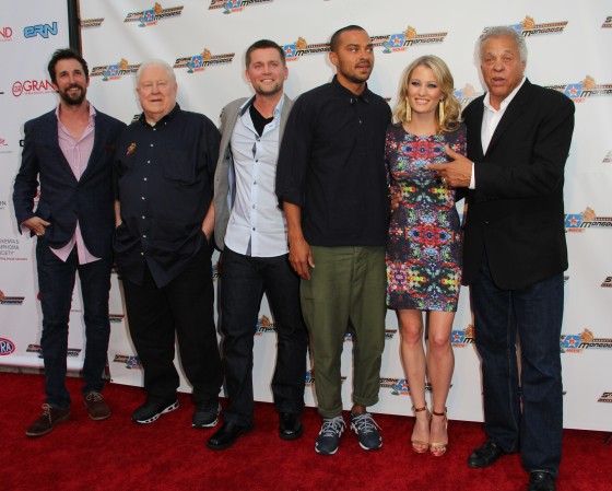 SPOTTED: Noah Wyle, Jesse Williams, Ian Ziering, Sara Wells, Ashley Hinshaw, Don Prudhomme and Tom McEwen at the premiere of “Snake & Mongoo$e,” at the Egyptian Theatere in Hollywood on August 26, 2013.