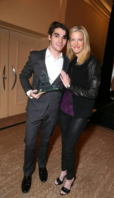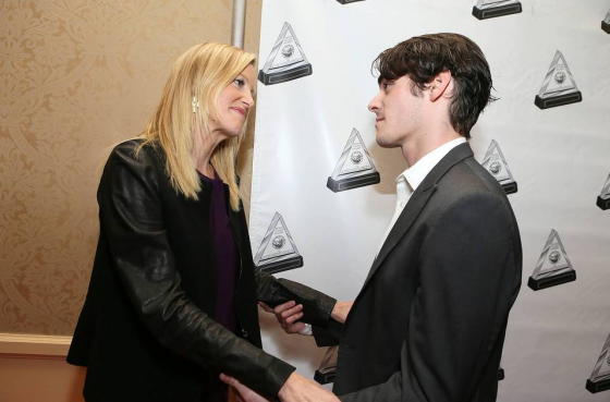 Anna Gunn and RJ Mitte hugged it out after Anna presented RJ with his “SAG-AFTRA Harold Russell” award at the 2013 Media Access Awards