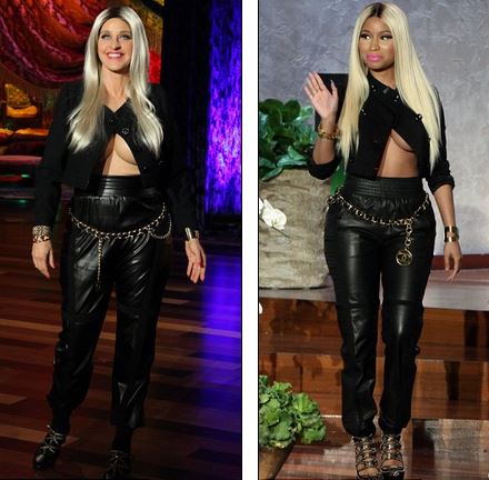 Ellen DeGeneres has channeled her inner Nicki Minaj and dressed as the rapper for Halloween. Ellen’s costume came complete with a blonde wig, fake boobs and a risque outfit resembling the look Nicki sported during her appearance on the Ellen DeGeneres show last month.