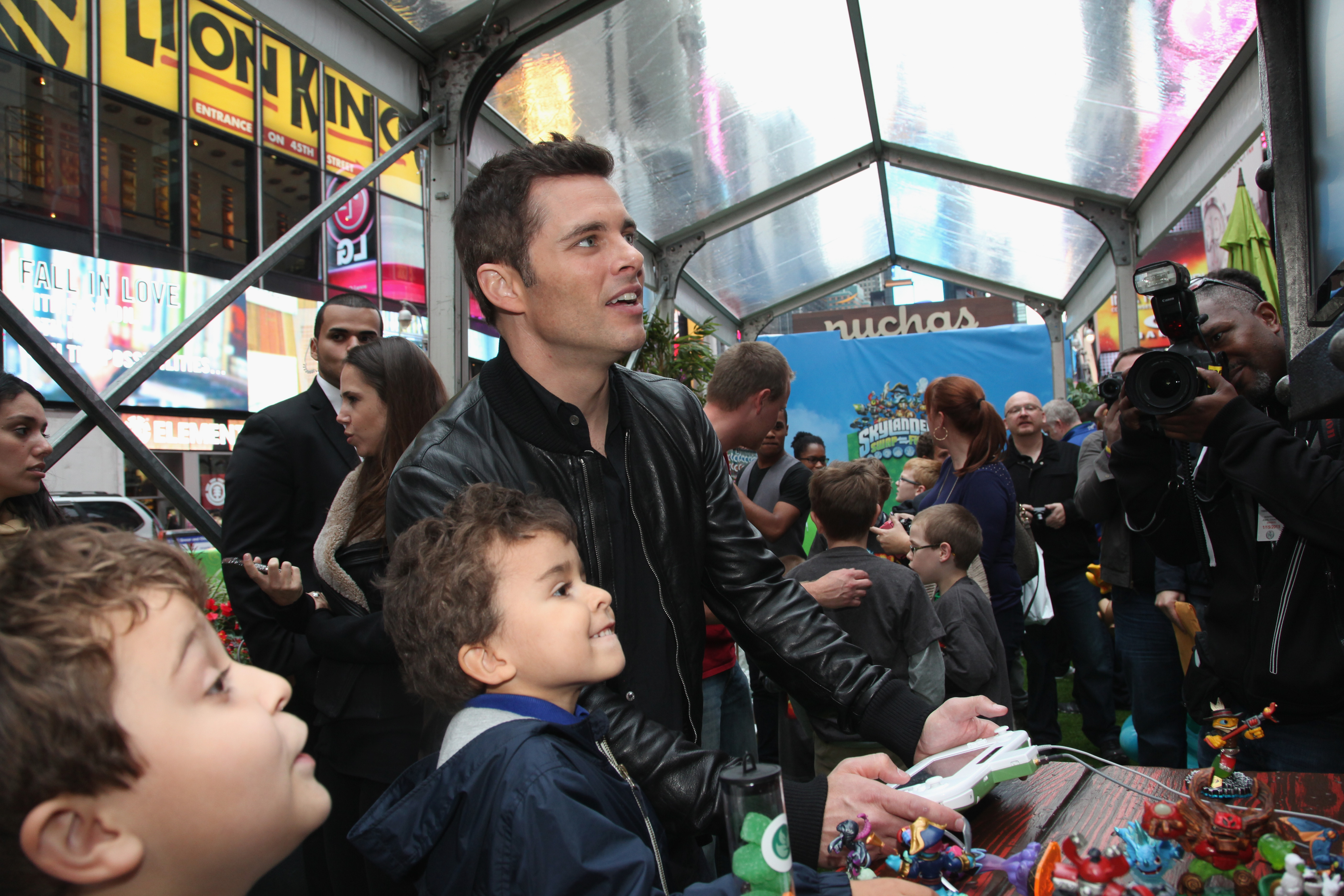 NEW YORK, NY – OCTOBER 10: In this photo distributed by Activision Publishing Inc., James Marsden joins kids to visit “SWAPtoberfest” in Times Square Oct. 10, 2013 in celebration of the launch of Skylanders SWAP Force. Activision created a life sized build out of the world of Skylanders in the middle of Times Square. (Photo by Donald Bowers/Getty Images for Activision)