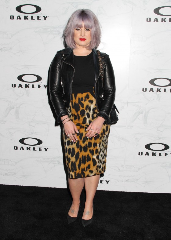 Ashley, who is the new face of the Oakley 2014 eyewear campaign, Made for More, dressed evening chic in black textured RTA leather pants, a white V-neck Elizabeth and James top, red Brian Atwood shoes, and Tom Tom jewels. Kelly showed her wild side in a black leather jacket and a leopard print skirt.