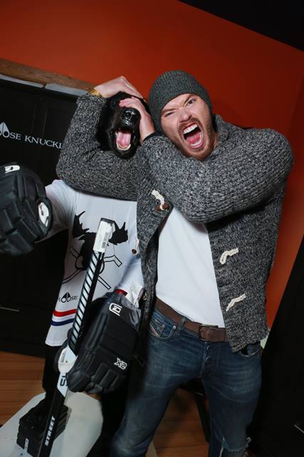 Kellan Lutz stopped by the TR Suites and showed off his playful side with the Moose Knuckles Canada bear!