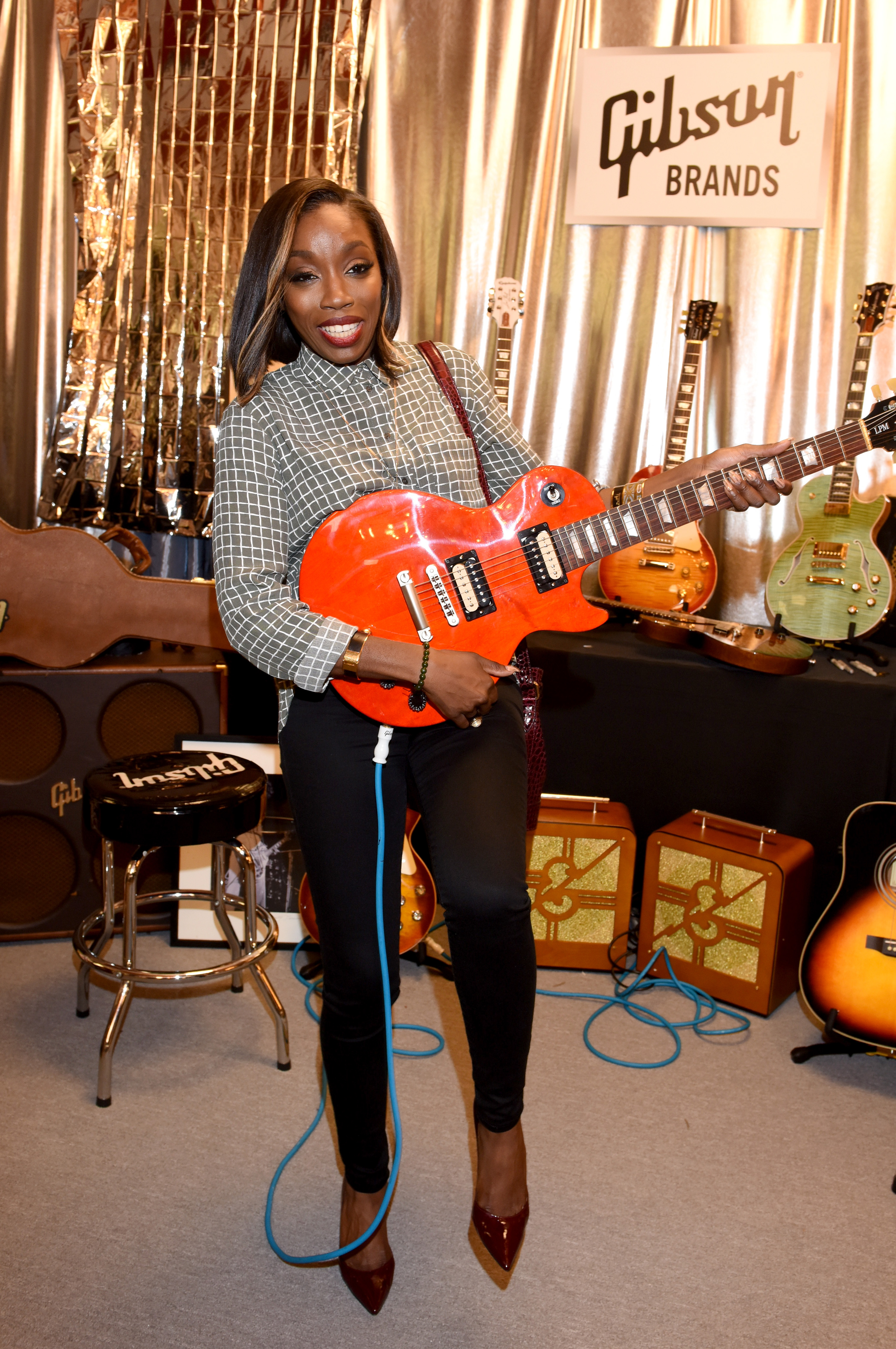 If all that weren’t enough, there were also $1,140 Gibson guitars, one of which you see Estelle playing with in the photo above, an $800 gift card for a “custom candy buffet and dessert bar” from Candy Vixen, a bag of Aerosmith drummer Joey Kramer’s Rockin’ and Roastin’ organic coffee, gifts from Halo Natural Pet Food, PURELL Hand Sanitizer, Live Love Pop, Ventura Lipo-Light, weight loss products from Hydroxycut, Lulu DK temporary metallic tattoos, a PowerCube power strip, and a copy of Archibald’s Next Big Thing, an illustrated children’s book by actor Tony Hale.