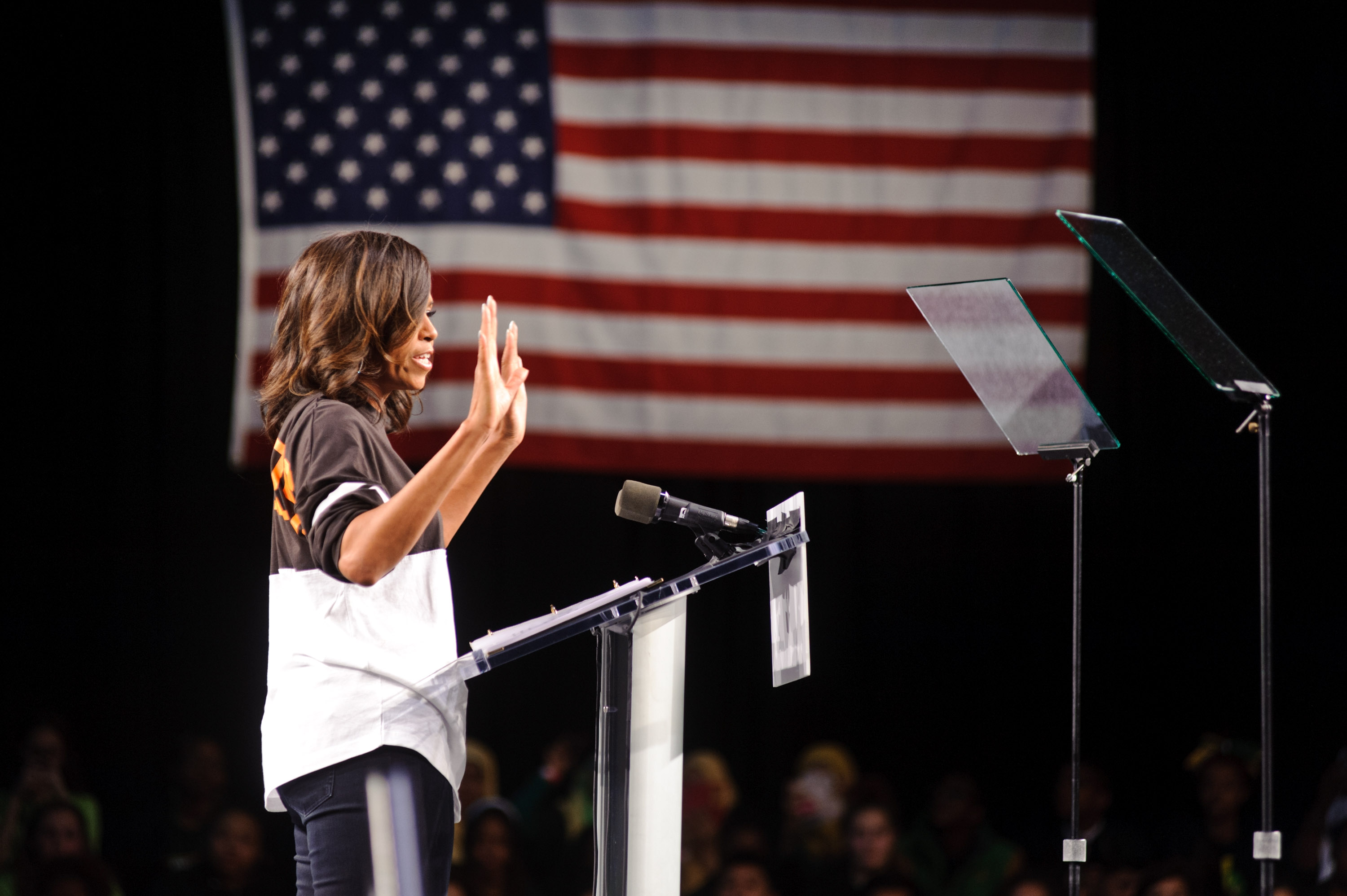DETROIT, MI – MAY 01: First Lady Michelle Obama attends the First-Ever Citywide College Signing Day With Get Schooled And Detroit College Access Network As Part Of The First Lady’s Reach Higher Initiative in Detroit, Michigan. (Photo by Timothy Hiatt/Getty Images for Get Schooled)