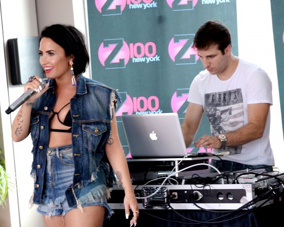 The weather may be hot, but Demi Lovato is cool for the summer! The pop songstress was spotted sporting a barely-there strappy bikini top and knee-high gladiator stilettos, as she officially debuted her sweltering new single Cool for the Summer on iHeartRadio earlier this week. The songstress kicked off the festivities with an exclusive poolside performance on Gansevoort Park Avenue’s sky-high rooftop.