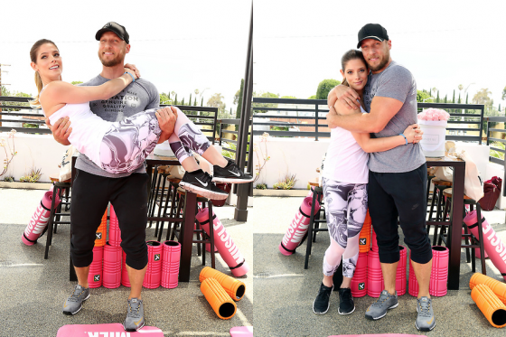 Actress and fitness fanatic, Ashley Greene hosted a Muscle Milk sponsored re-launch event at her favorite workout hotspot Rise Nation in West Hollywood Tuesday, May 24th. The invite only group fitness class was lead by founder and celebrity trainer Jason Walsh, who has trained Ashlee for the past 3 years. Jason navigated guests through a difficult yet effective 30 minute full body workout done exclusively on the Versaclimber athlete conditioning machine. The The workout was followed by a cool down on branded Muscle Milk yoga matts and TriggerPoint foam rollers, also conducted by Jason on Rise Nation’s patio space overlooking the Hollywood Hills skyline.