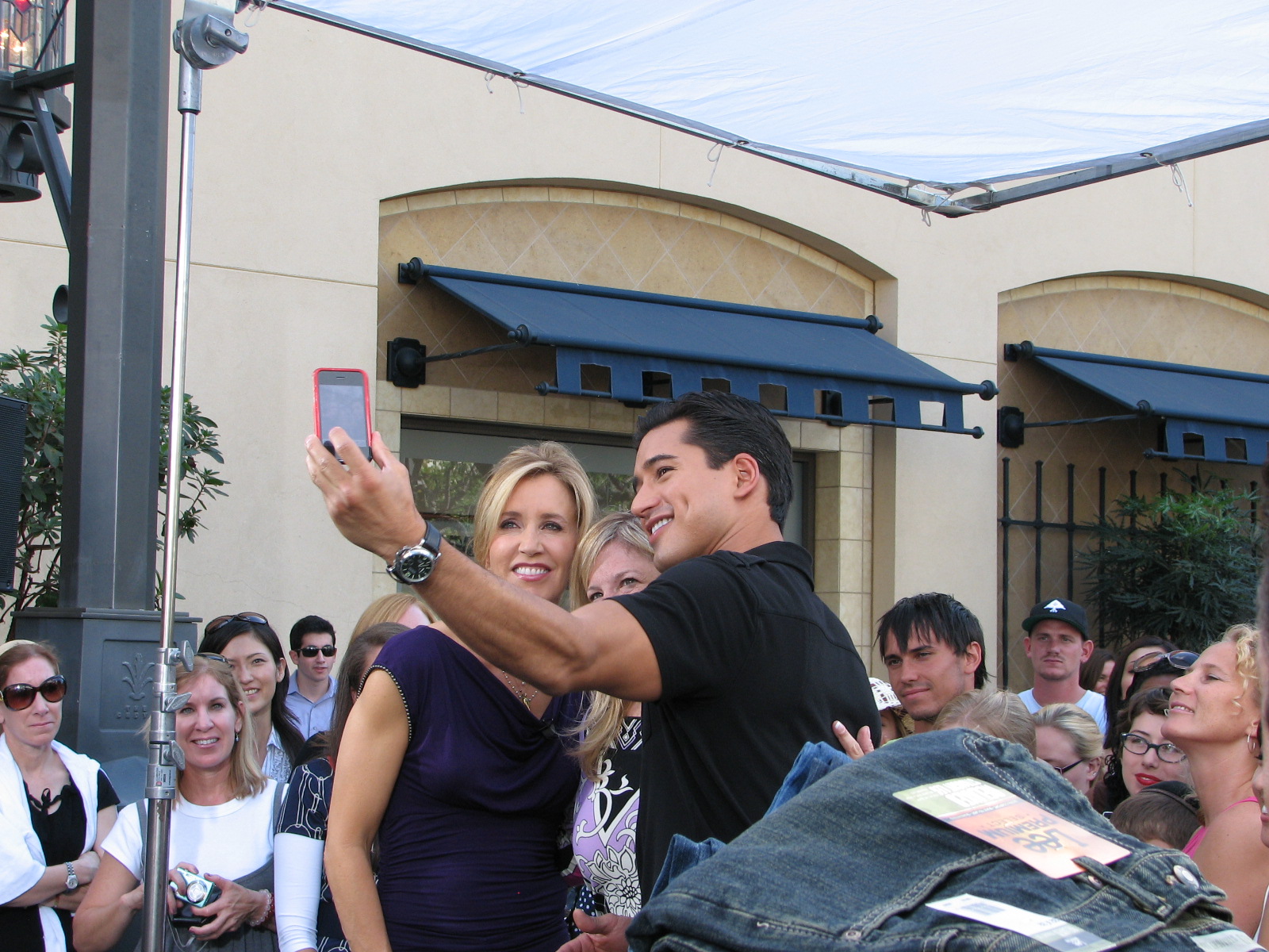 | Mario Lopez taking a picture of Felicity Huffman and a fan |