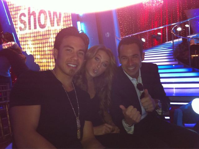 Jake Pavelka sent this pic during tonight’s live broadcast of himself, Erin Andrews and Evan Lysacek :