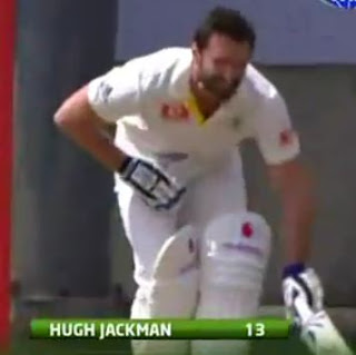 Jackman was playing cricket in Melbourne and while taping a segment for the Australian broadcast of The Ashes Test cricket series, he swung incorrectly.