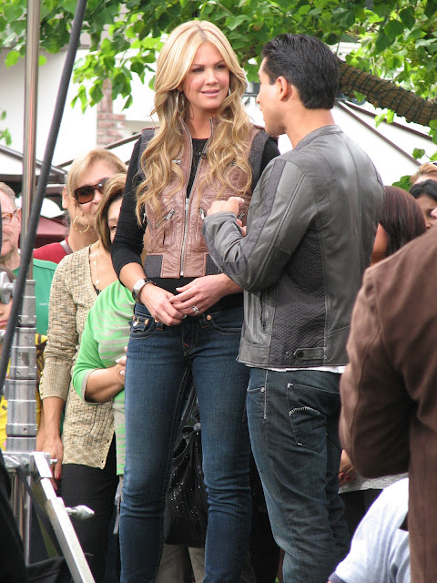 Nancy O’Dell stopped by The Grove to say hello to Mario Lopez of Extra and to bring him a baby album gift filled with Mario’s childhood pics! O’Dell, a fifth generation scrap booker, has also written a book, Full of Life: Mom-to-Mom Tips, filled with tips for new moms.