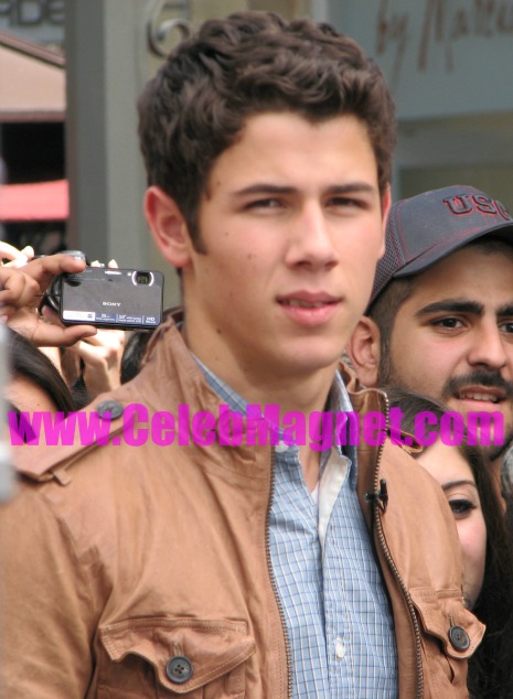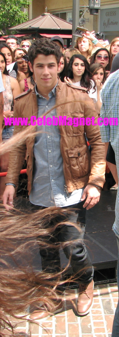 Nick, without girlfriend Delta Goodrem in tow, took time to take a picture or sign autographs with every one of the hundreds of fans gathered around the Extra stage.