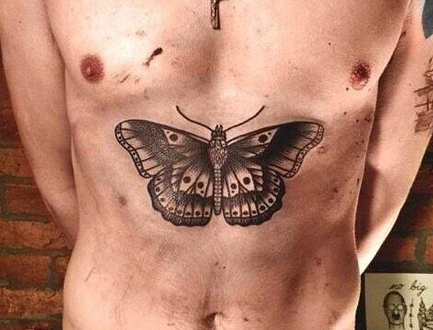 One Direction’s Harry Styles loves tattoos. Big, giant, massive tattoos. His latest tat is his biggest one to date: A butterfly stretching over his entire chest.