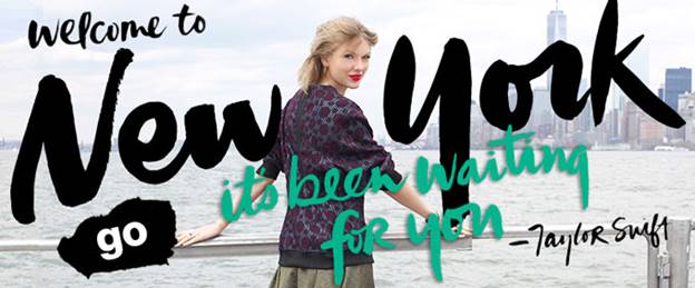 Taylor Swift Sports N/TICE in NYCGO Campaign