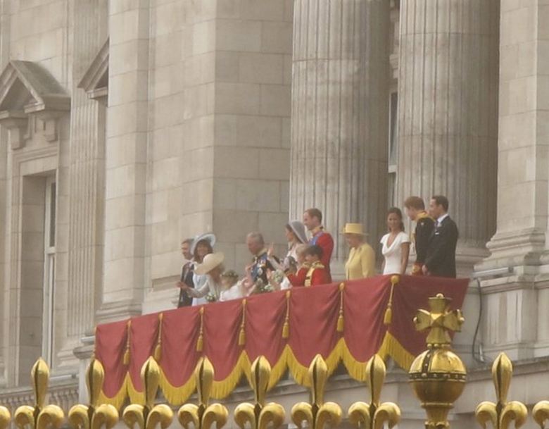 Back Row (left to right): Master Tom Pettifer, HRH The Duchess of Cornwall, HRH The Prince of Wales, HRH Prince Henry of Wales, Mr. Michael Middleton, Mr. James Middleton, Miss Philippa Middleton.