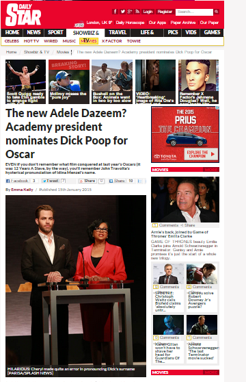 - Chris Pine on UK Daily Star (2015 Academy Awards Announcements)