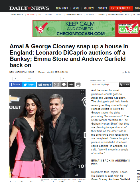 - George and Amal Clooney on NY Daily News
