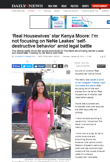 - Kenya Moore on NY Daily News (2015 Extra TV Set)